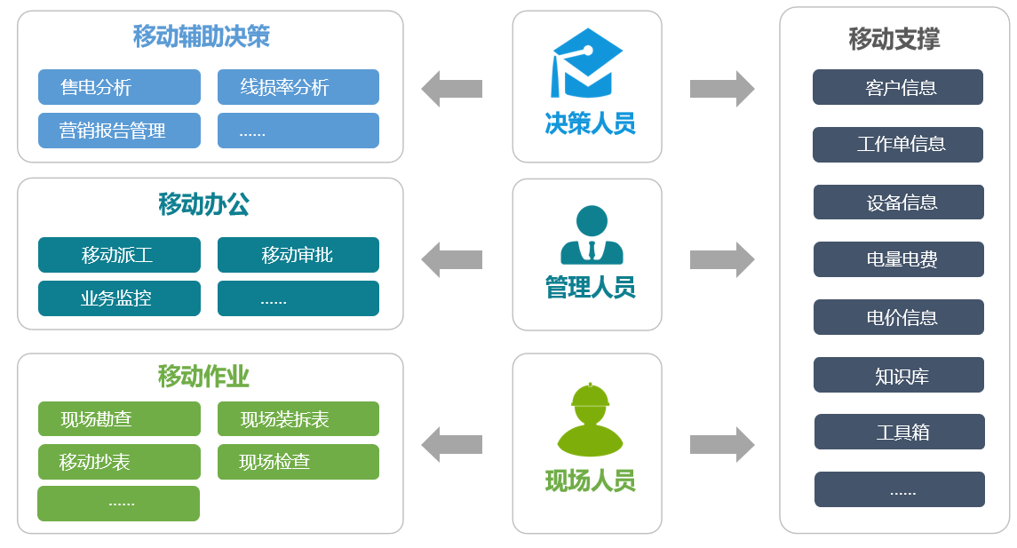 电力营销现场作业APP以一体化电力营销治理系统为基础,,,,,,涵盖业扩、计量、客服、抄核收、用检、营销稽察、线损等营业的系统应用,,,,,,实现业扩营业受理、计量装置磨练检定、电量电费退补等营业流程的移动化处置惩罚,,,,,,该应用可实现营销全营业、全流程、全效劳的移动化笼罩。。。。