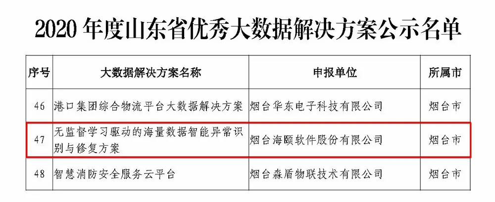 克日,,,山东省工信厅公示了2020年度省级大数据“三优两重”(优异大数据产品、优异大数据解决计划、优异大数据应用案例和重点大数据企业、重点大数据资源)项目名单。。。。。尊龙凯时大数据集成平台V1.0入选“2020 年度山东省优异大数据产品”,,,无监视学习驱动的海量数据智能异知识别与修复计划入选“2020 年度山东省优异大数据解决计划”,,,尊龙凯时入选“2020 年度山东省重点大数据企业”。。。。。
